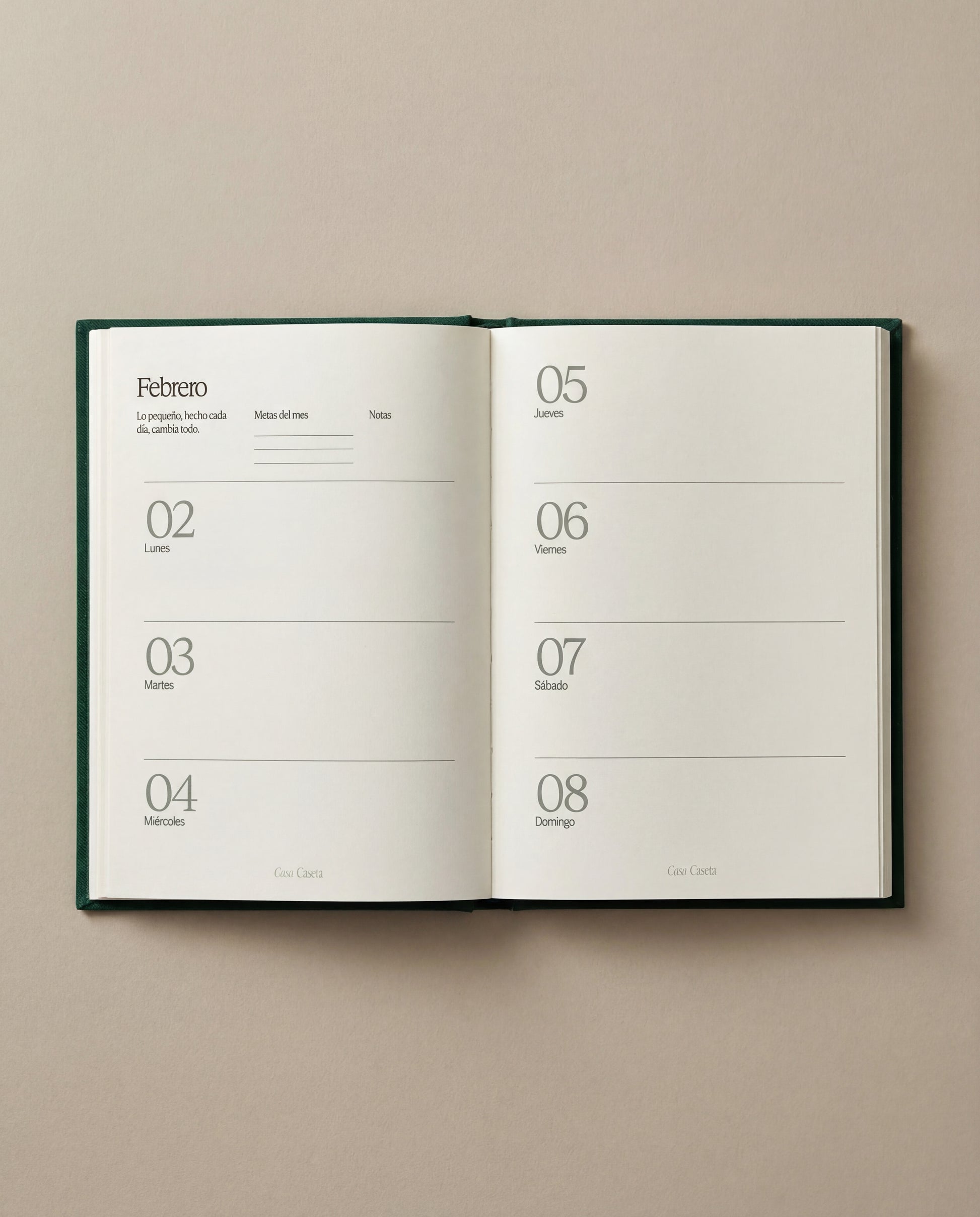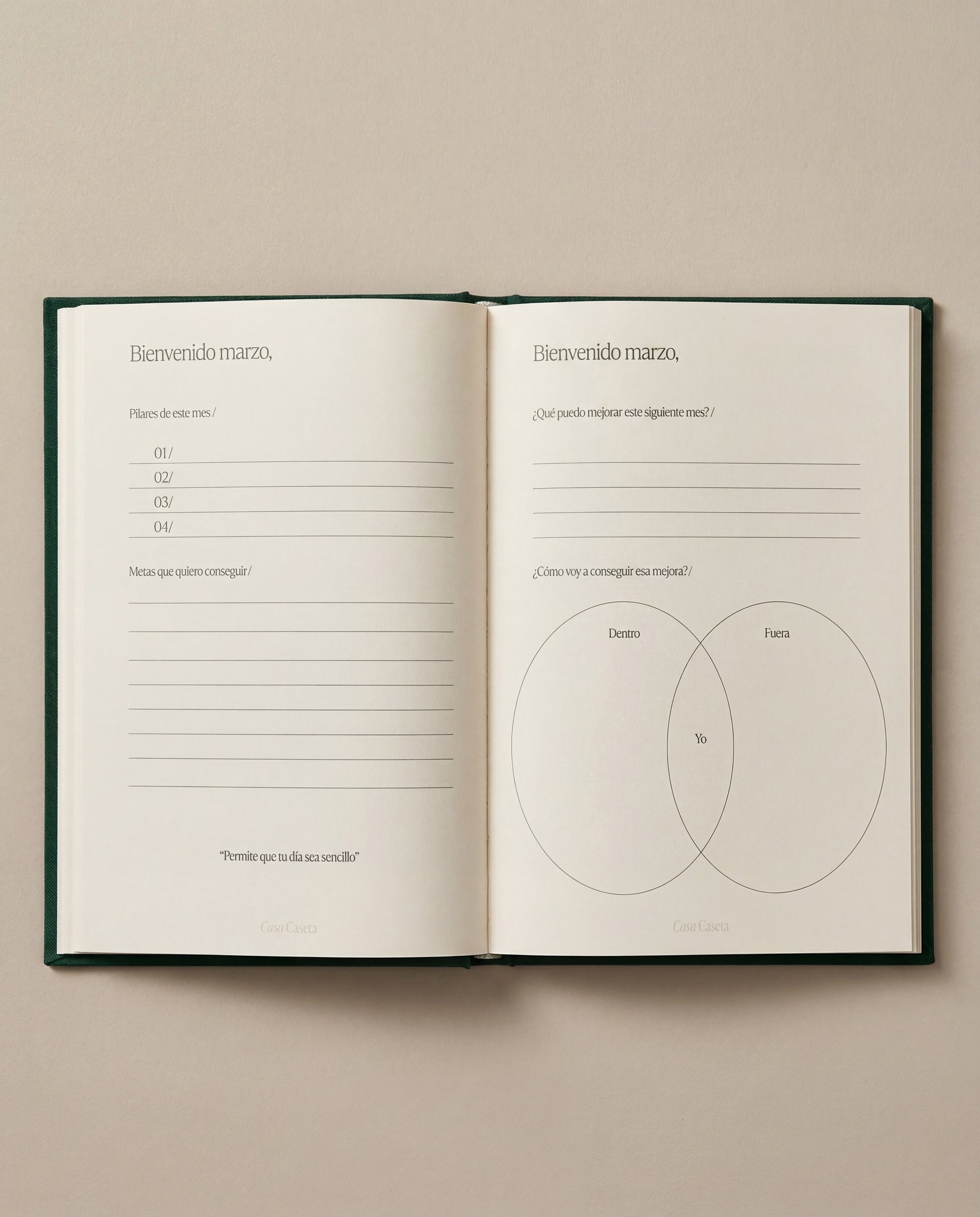 Cada mes comienza con una vista general para que puedas planificar con perspectiva y termina con una reflexión de cierre, invitándote a parar, revisar y aprender de lo vivido. En el interior, las páginas diarias te ayudan a ordenar tus tareas, tus ideas y tu tiempo, manteniendo el equilibrio entre hacer y sentir.